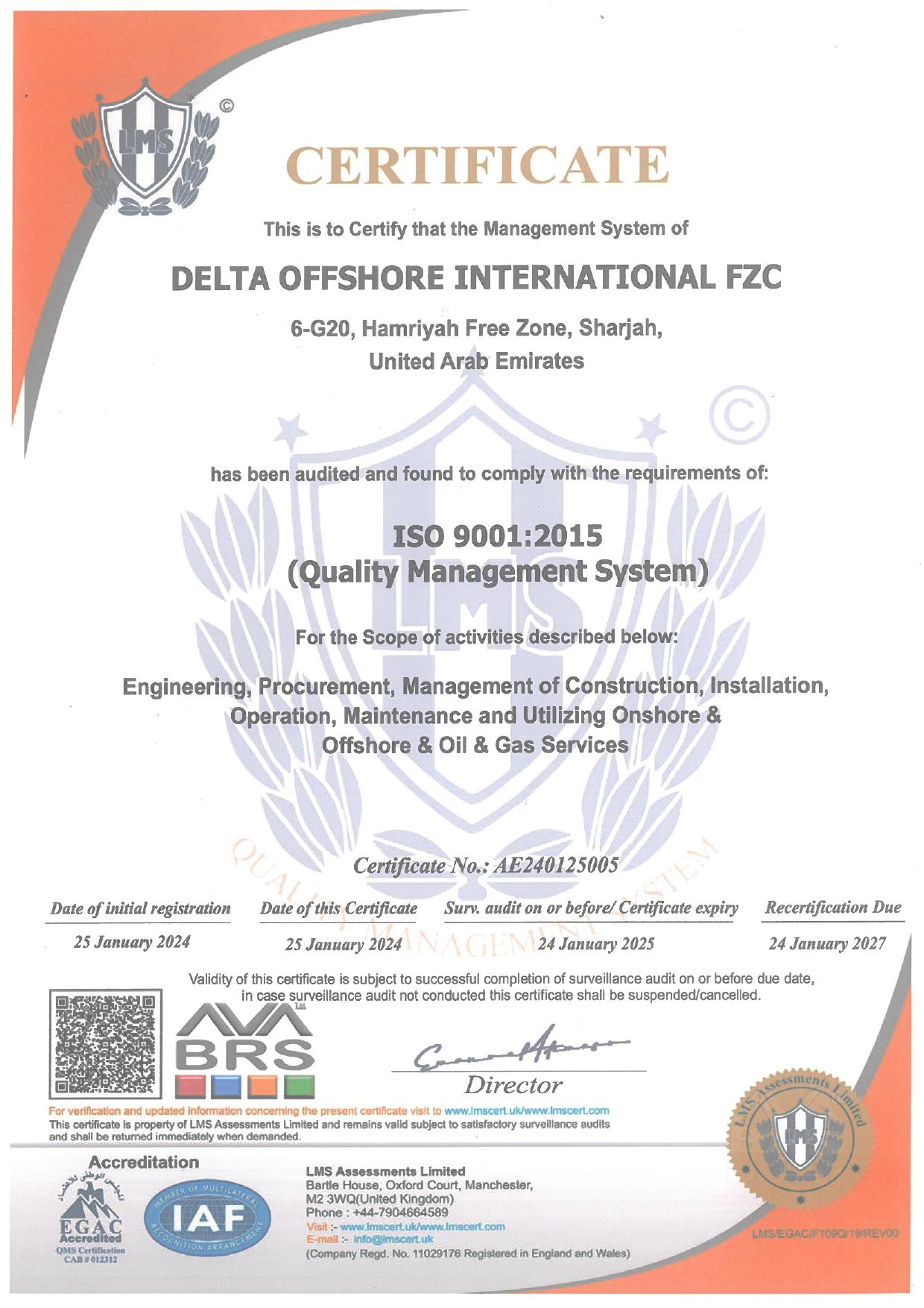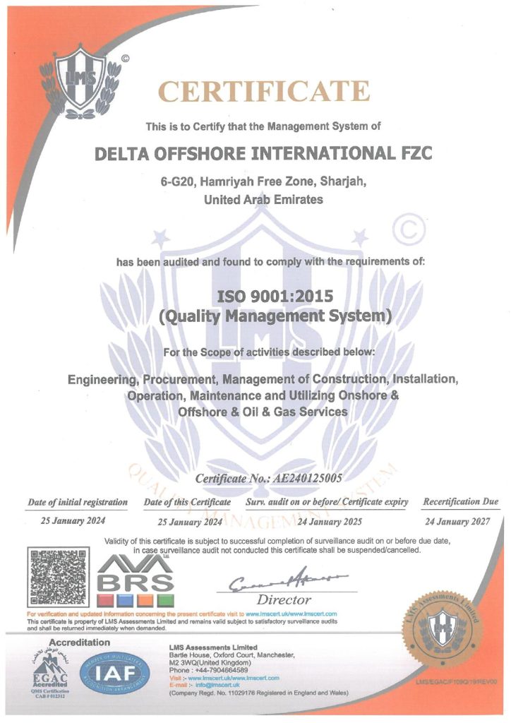 Delta’s aim is to achieve the highest quality standards in provision of intended services with utmost emphasis on the health and safety of manpower and without creating any impact on the environment. Pursuing satisfaction of our customers, we tackle each challenge with quality, reliable and innovative solutions. Tailored solutions within budget expenditure, open and responsive relationship with customers, proactive engineering and management with timely and safe / quality delivery of services are part of our key aims. The Health, Safety, Environent, Quality, and Sustainability approach in our services is based on a framework of principles, olicies and proesses, governed by certified management systems and a decentralized organizationwhich are tailored to the specific Contractor nature of the business.